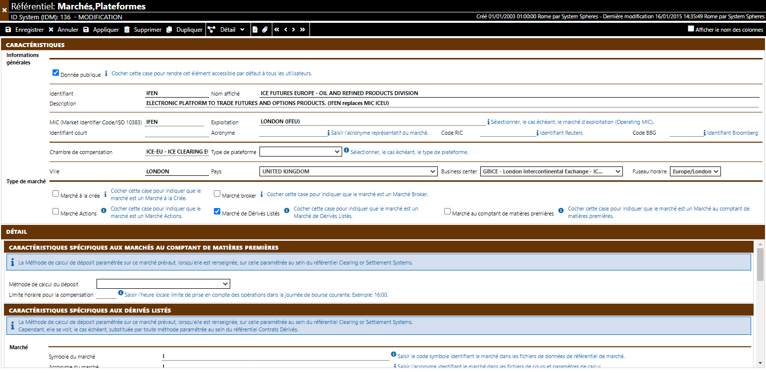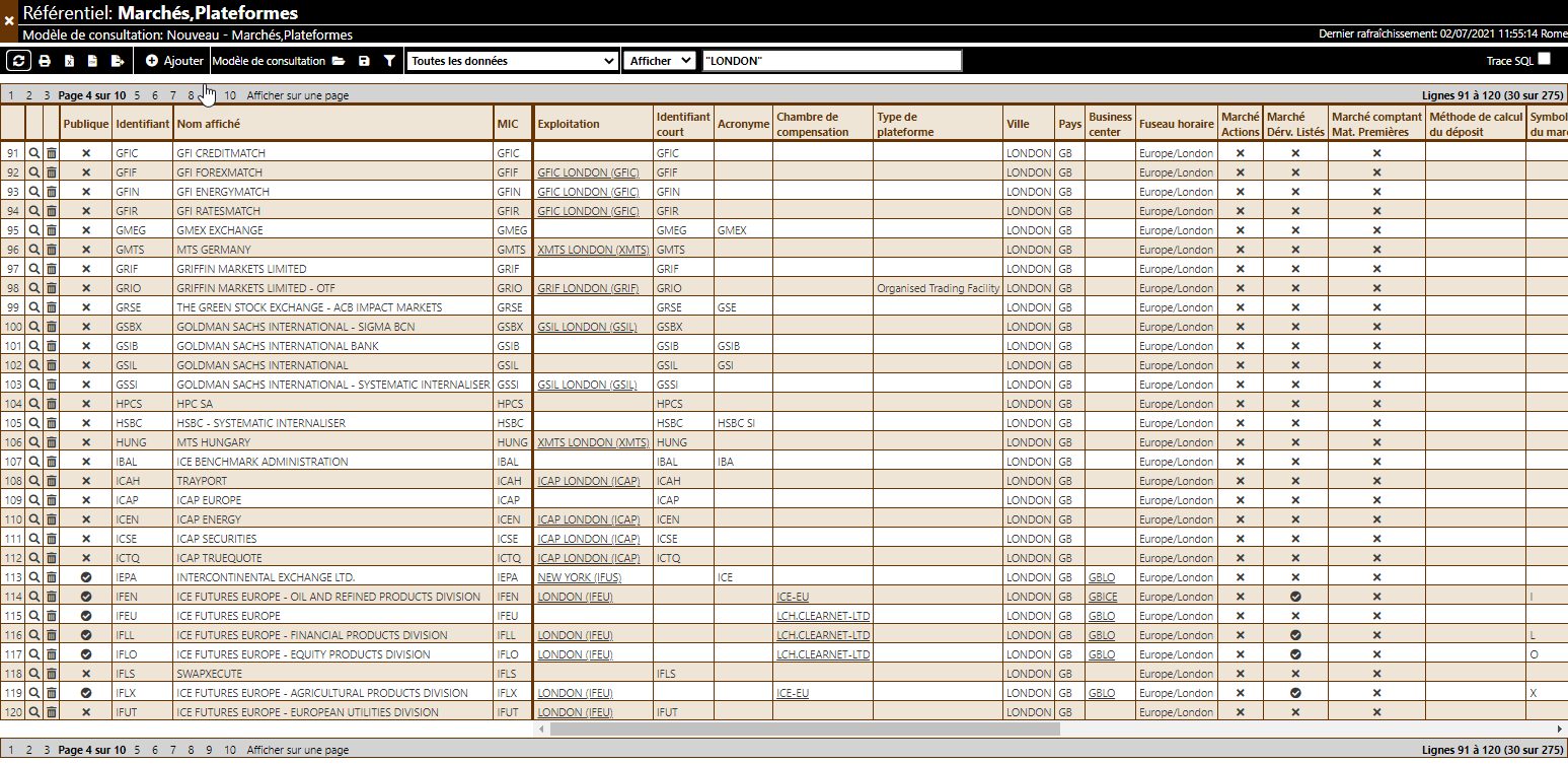 Statuts: fourniture et gestion des status de négociation personnalisables (checking, matching, processing, ...)